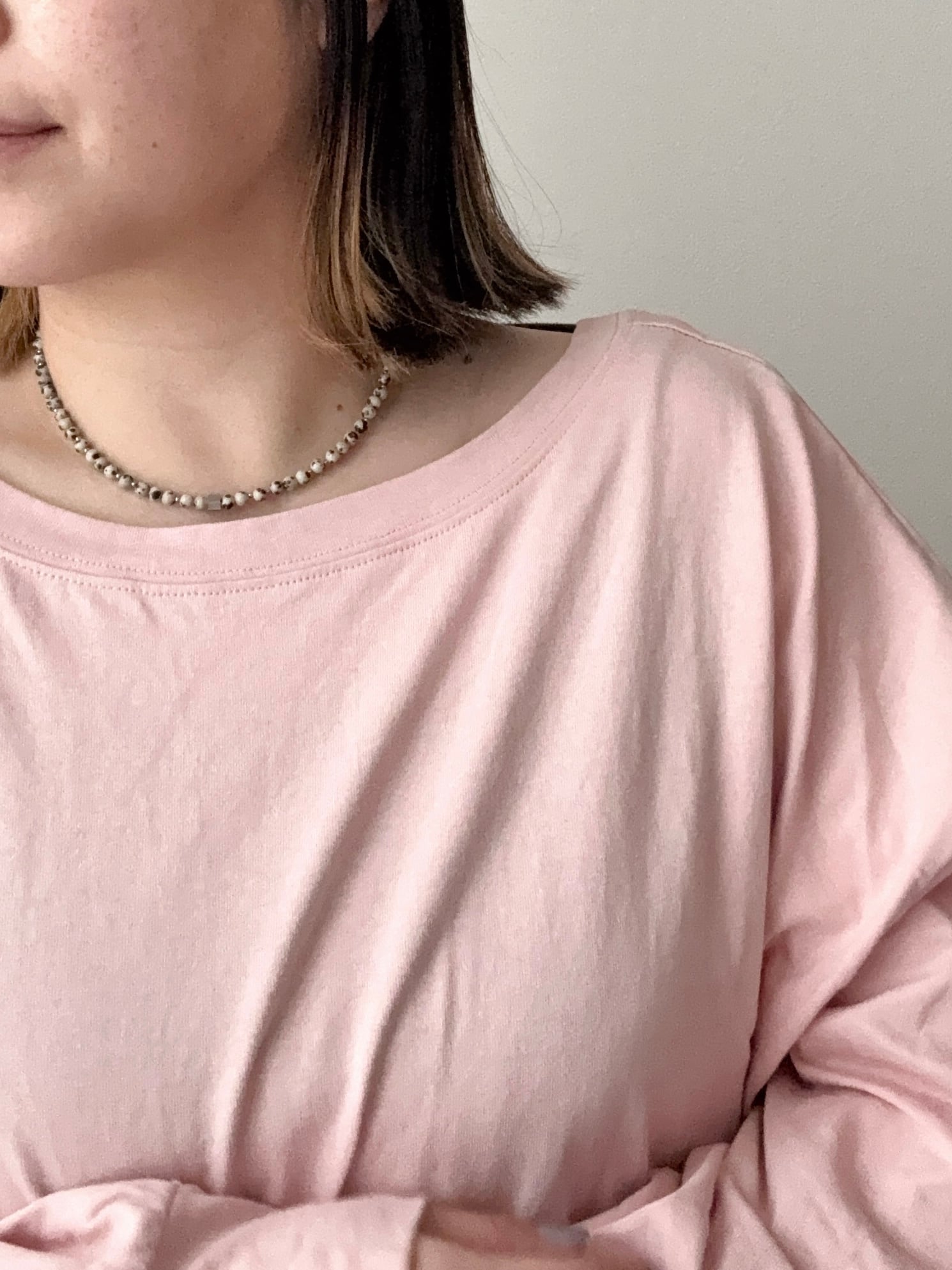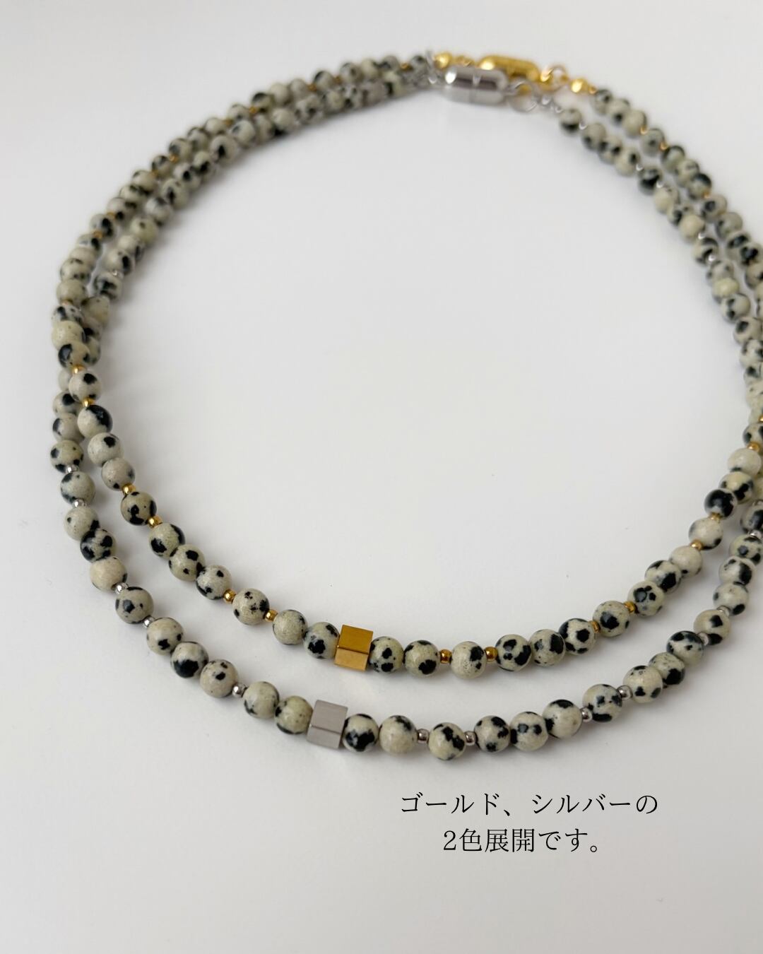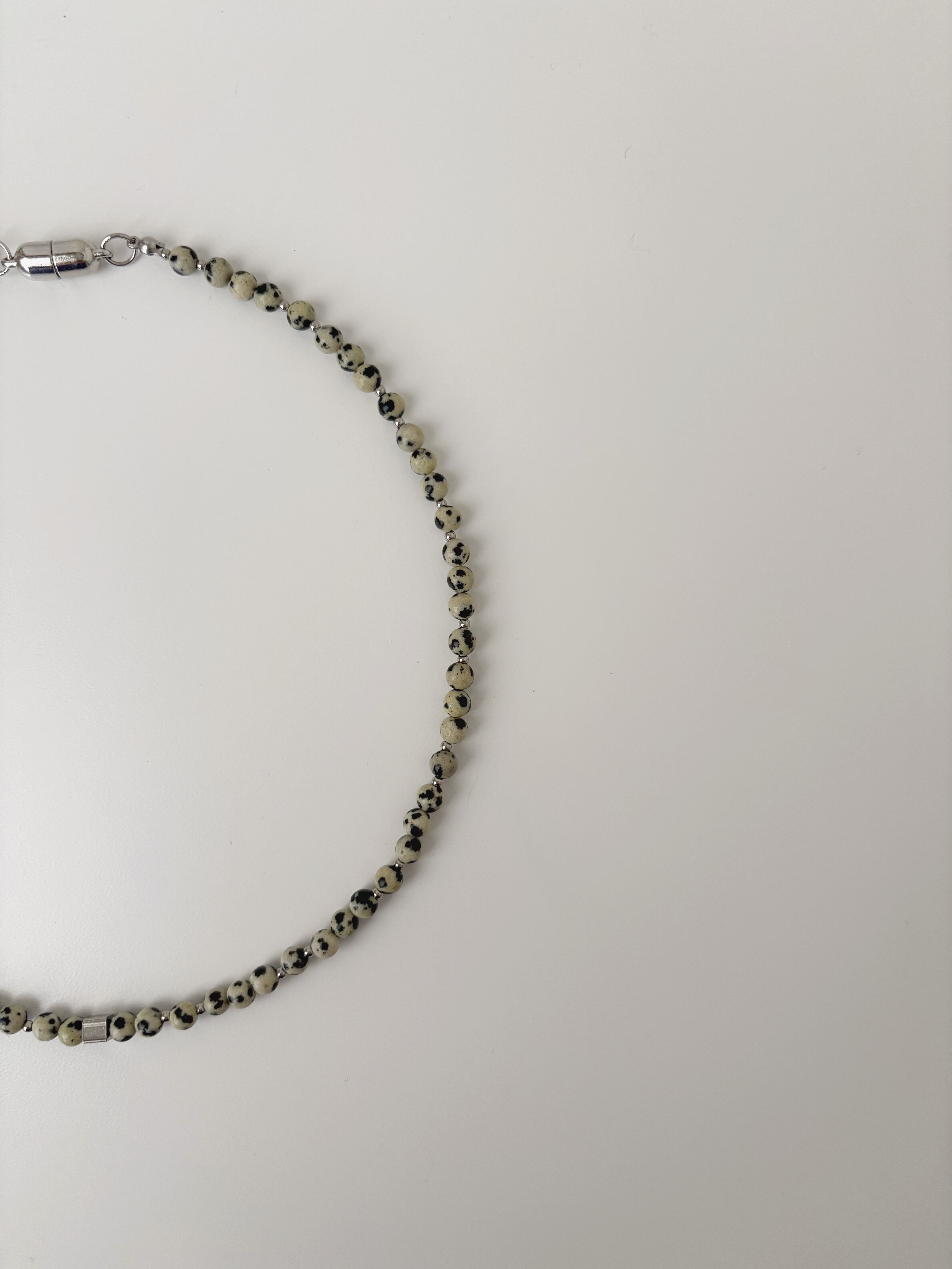 天然石ビーズチョーカーネックレス/(シルバー)ダルメシアン