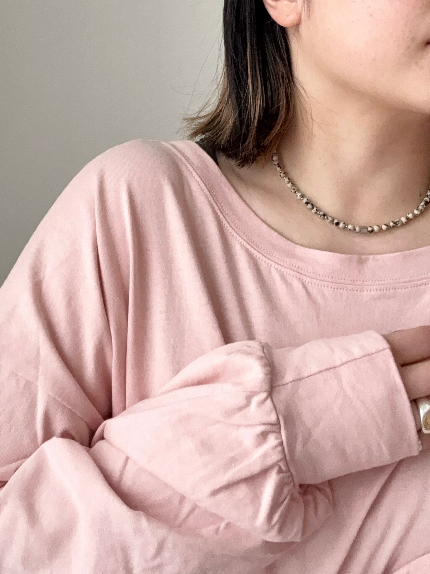 首元にぴたっと沿うサイズ感で、